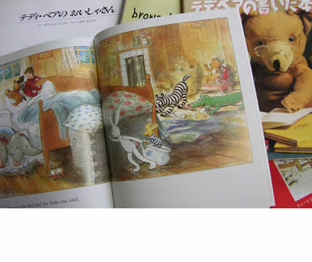 テディベアが主人公の絵本です 左の本の名前にマウスをあてると 表紙の写真と説明がでてきます